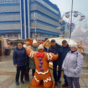 W grudniu 2023 roku w ramach działań naszego Klubu zostały zorganizowane zajęcia manualne, podczas których przygotowywaliśmy ozdoby bożonarodzeniowe. W ruch poszła maszyna do szycia. Wraz z Klubem Seniora z ul. Żółkiewskiego wzięliśmy udział w akcji szycia serc dla najmłodszych pacjentów Uniwersyteckiego Centrum Klinicznego w Katowicach. Z okazji Mikołajek seniorzy poprowadzili warsztaty plastyczne dla chorych dzieci. Podczas zajęć kulinarnych zaangażowaliśmy się w przygotowanie potraw, których można było skosztować na zorganizowanym w Klubie spotkaniu przedświątecznym, gdzie przy wspólnym stole spotkali się wszyscy uczestnicy wraz z zaproszonymi gośćmi. Odbyło wspólne kolędowanie, odwiedził nas również Mikołaj żeby wręczyć wszystkim prezenty. W tym miesiącu wybraliśmy się do kina na film pt. “Uwierz w Mikołaja”. W nastrój świąteczny wprowadził nas również spektakl w Teatrze Nowym pt. „Scrooge, Opowieść Wigilijna” na motywach książki Karola Dickensa. Okres Świąt Bożego Narodzenia to czas jarmarków. Nasz Klub również uczestniczył w tych barwnym wydarzeniu. Odwiedziliśmy katowicki Rynek na którym rokrocznie odbywa się Jarmark Bożonarodzeniowy.