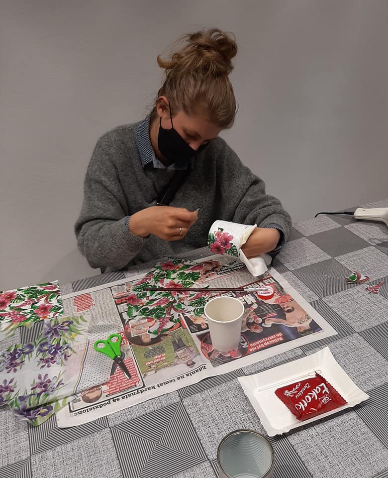 W miesiącu kwietniu 2021 r. w ramach Programu Aktywności Lokalnej dla dzielnicy Zandka ,odbyło się siedem warsztatów manualnych.Zajęcia odbywały się w dalszym ciągu z podziałem na grupy i z zachowaniem reżimu sanitarnego.Uczestnicy projektu wykonywali na zajęciach tabliczki powitalne i puszki ozdobne metodą decoupage, ozdobę w formie liścia Monstery z masy porcelanowej oraz biało-czerwone goździki z bibuły z okazji obchodów święta 1 majowego.
